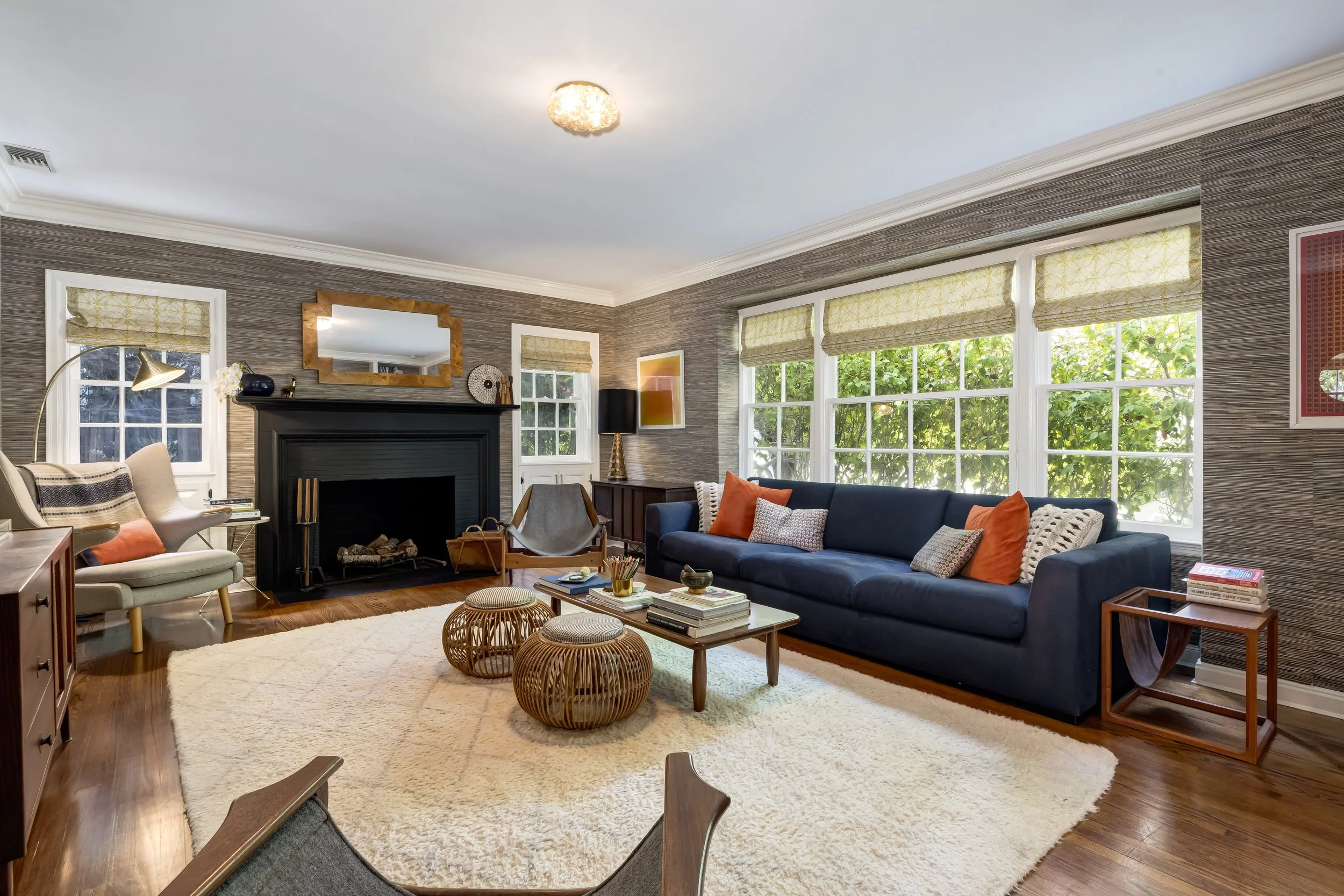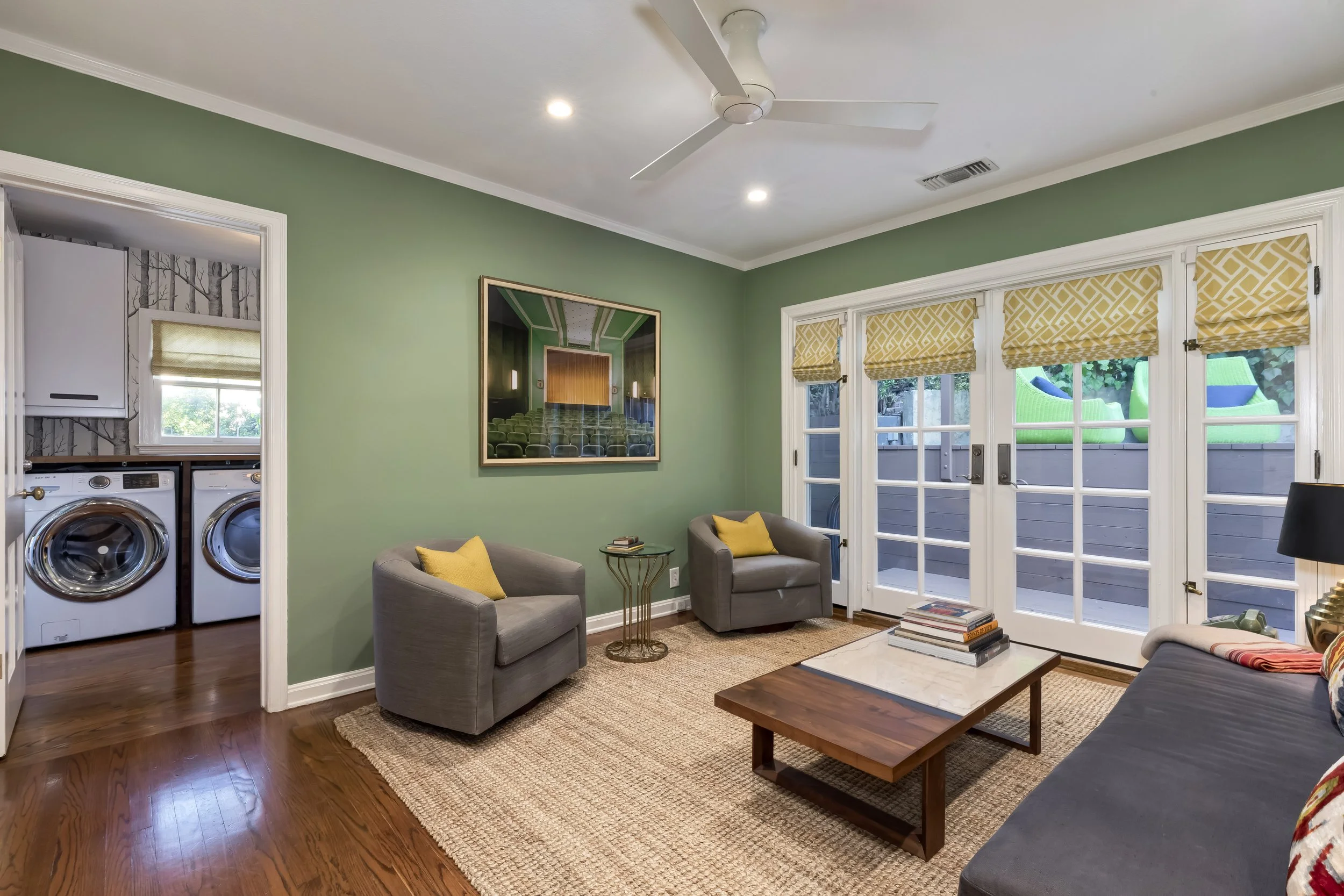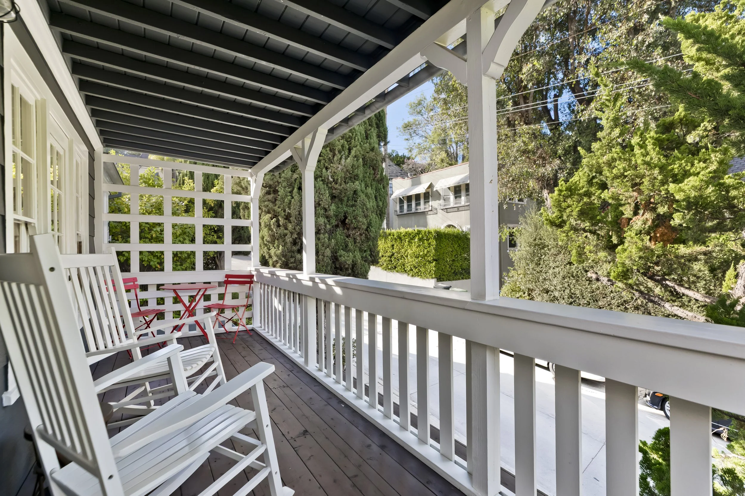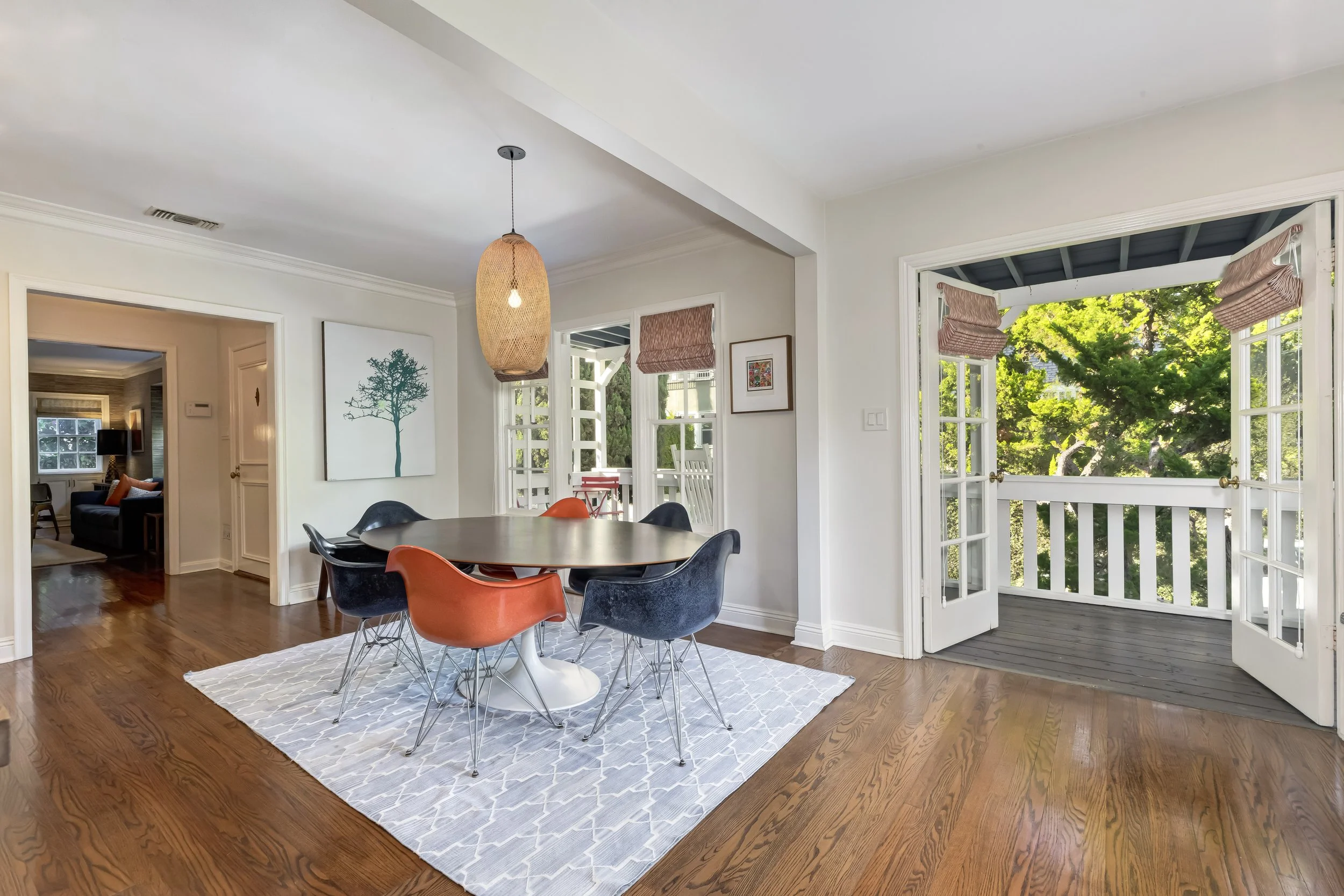 Tucked away in the most sought-after pocket of Beachwood Canyon, this gorgeous bungalow blends timeless charm with designer style. Step inside and you're welcomed by a cozy entryway that opens into a living room complete with built-in bookcases and fireplace, creating a warm inviting vibe . The open floor plan seamlessly connects the spacious kitchen and dining area, featuring plentiful storage, a stylish SMEG refrigerator, stainless steel appliances, and double French doors that open to a charming front deck perfect for morning coffee or sunset dinners. The large primary bedroom offers a peaceful retreat with a walk-in closet and double-door access to the yard, while the full hall bath features a beautiful clawfoot tub, walk-in shower, and marble-topped vanity. The second bedroom is ideal as a cozy guest room, den, or home office, and the designer powder room adds a chic touch for visitors. Hardwood floors throughout, custom window coverings for all windows and doors. A huge laundry room provides even more storage, and the attic accessible from the hall closet offers plenty of extra space. Step outside to a private backyard oasis with large leveled decks perfect for entertaining or relaxing under the stars. The garage can be used for parking, a studio or office and includes its own half bath. With a street-to-street lot and no neighbors behind you, this home offers rare privacy and a true sense of warmth in one of Los Angeles' most enchanting neighborhoods.