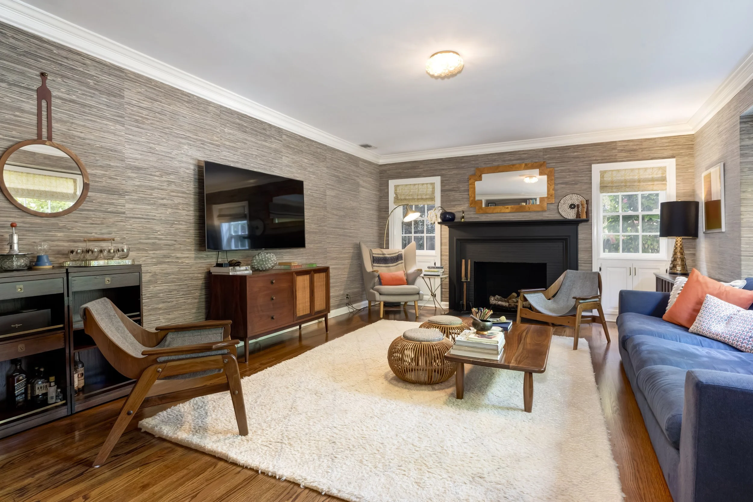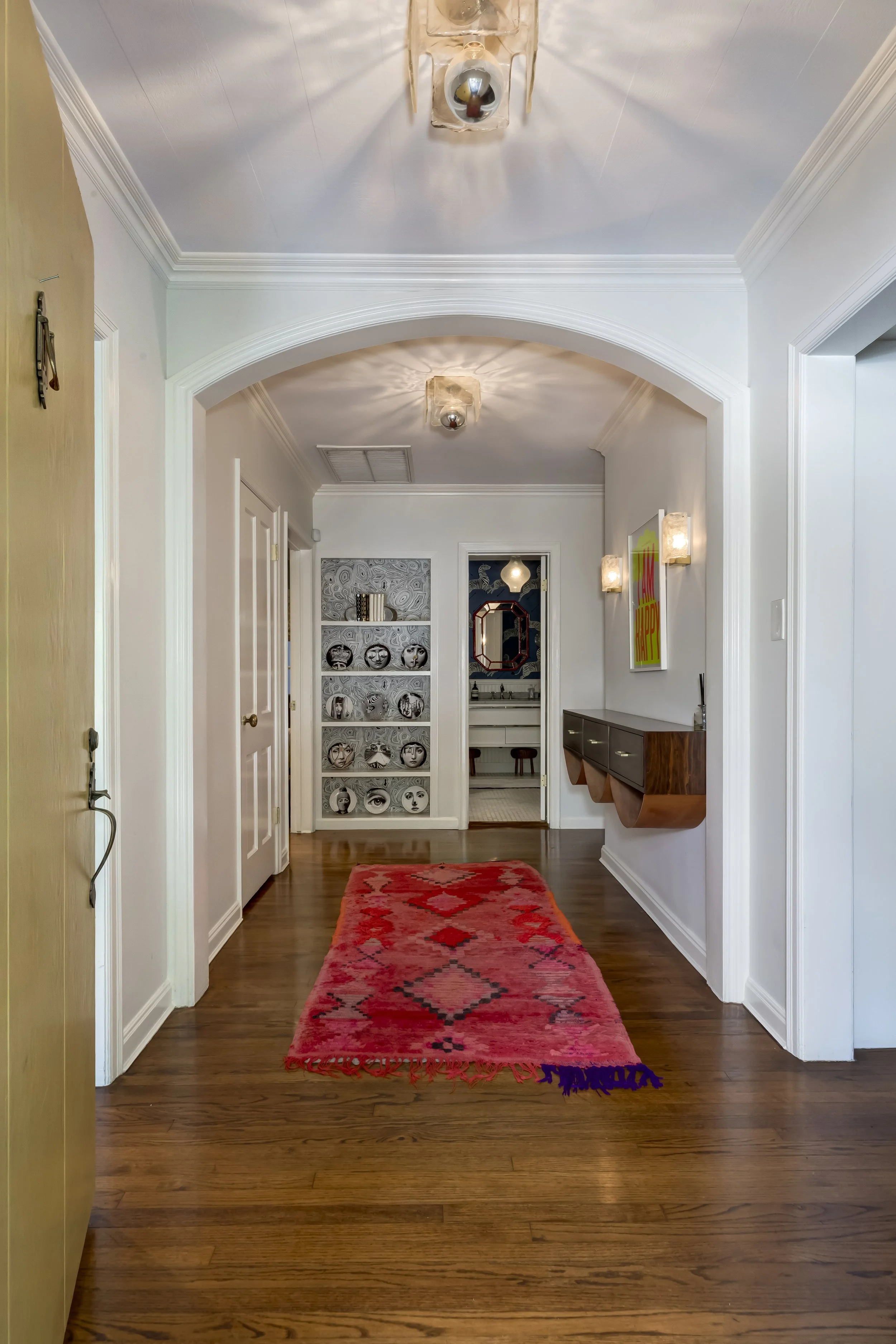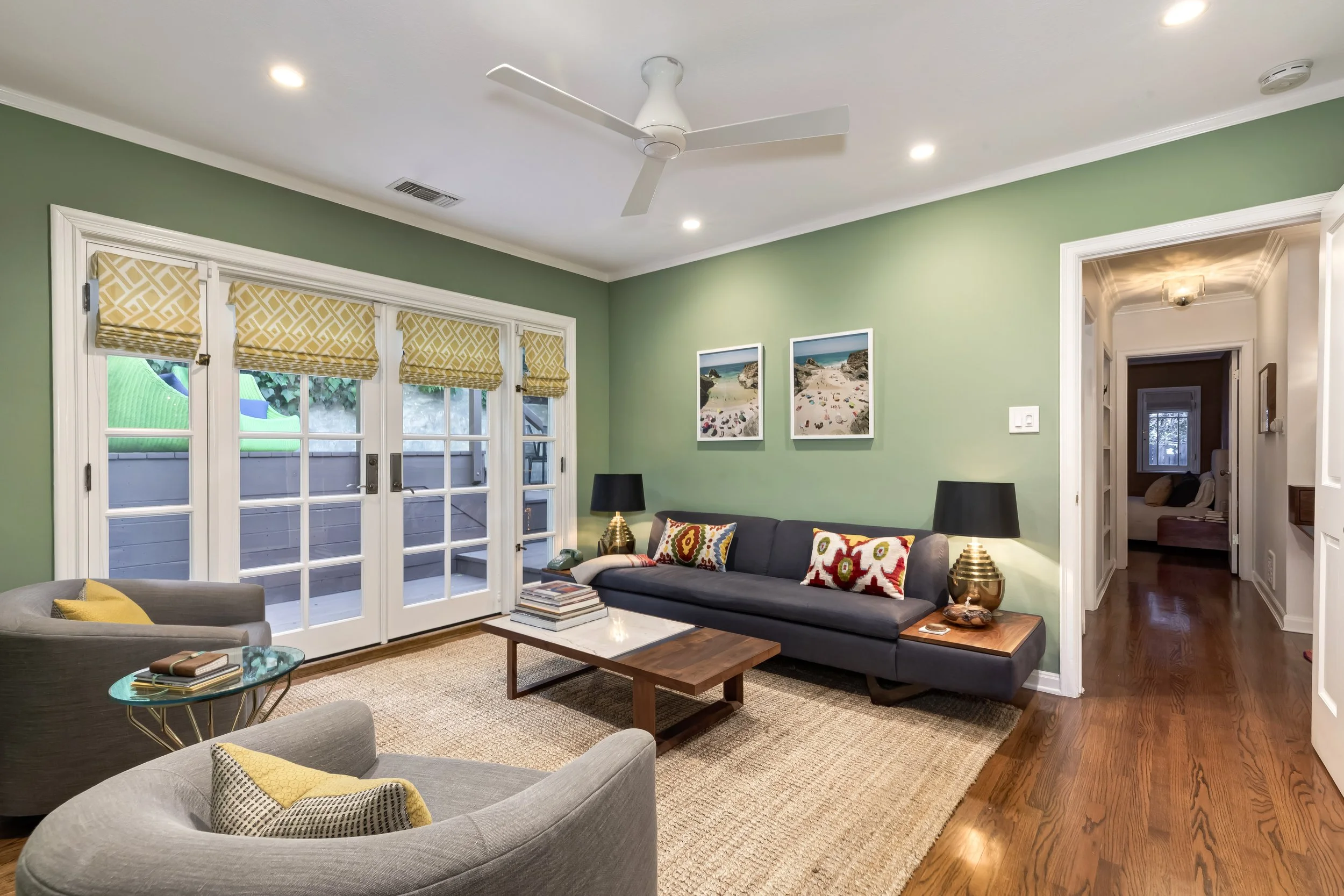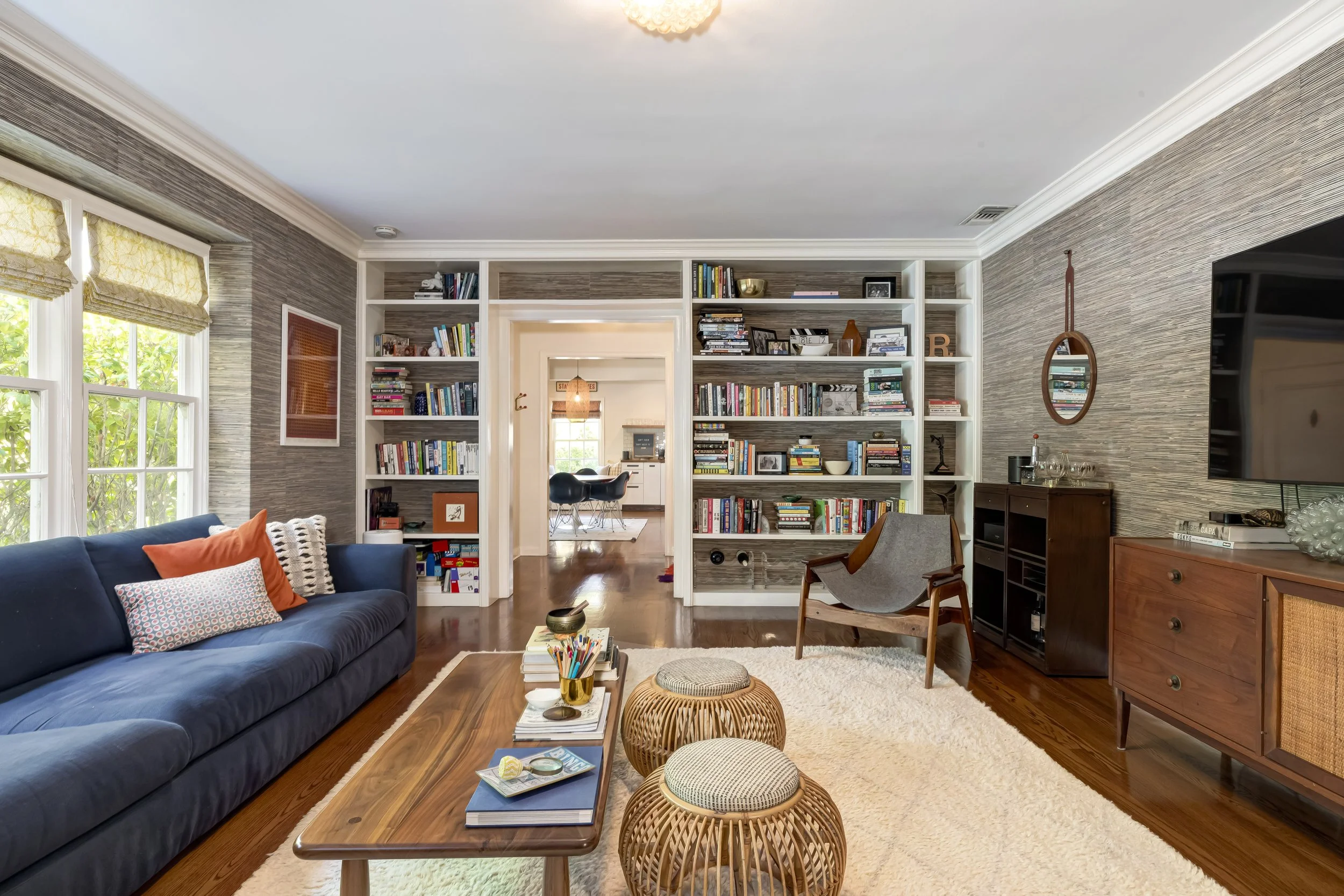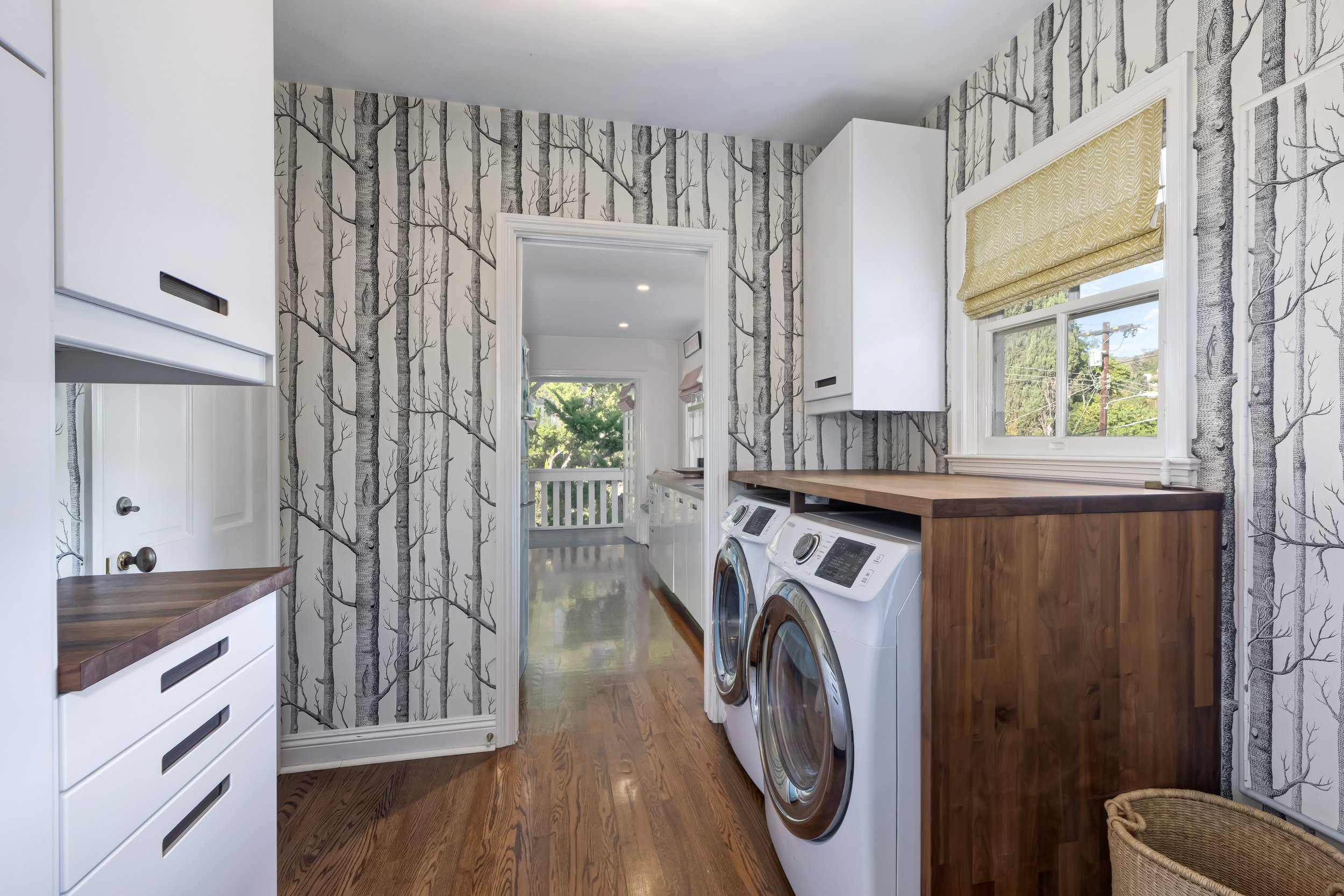 Tucked away in the most sought-after pocket of Beachwood Canyon, this gorgeous bungalow blends timeless charm with designer style. Step inside and you're welcomed by a cozy entryway that opens into a living room complete with built-in bookcases and fireplace, creating a warm inviting vibe . The open floor plan seamlessly connects the spacious kitchen and dining area, featuring plentiful storage, a stylish SMEG refrigerator, stainless steel appliances, and double French doors that open to a charming front deck perfect for morning coffee or sunset dinners. The large primary bedroom offers a peaceful retreat with a walk-in closet and double-door access to the yard, while the full hall bath features a beautiful clawfoot tub, walk-in shower, and marble-topped vanity. The second bedroom is ideal as a cozy guest room, den, or home office, and the designer powder room adds a chic touch for visitors. Hardwood floors throughout, custom window coverings for all windows and doors. A huge laundry room provides even more storage, and the attic accessible from the hall closet offers plenty of extra space. Step outside to a private backyard oasis with large leveled decks perfect for entertaining or relaxing under the stars. The garage can be used for parking, a studio or office and includes its own half bath. With a street-to-street lot and no neighbors behind you, this home offers rare privacy and a true sense of warmth in one of Los Angeles' most enchanting neighborhoods.